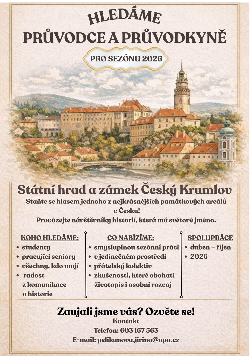 Správa Státního hradu a zámku Český Krumlov přijme průvodce a průvodkyně na sezónu 2026